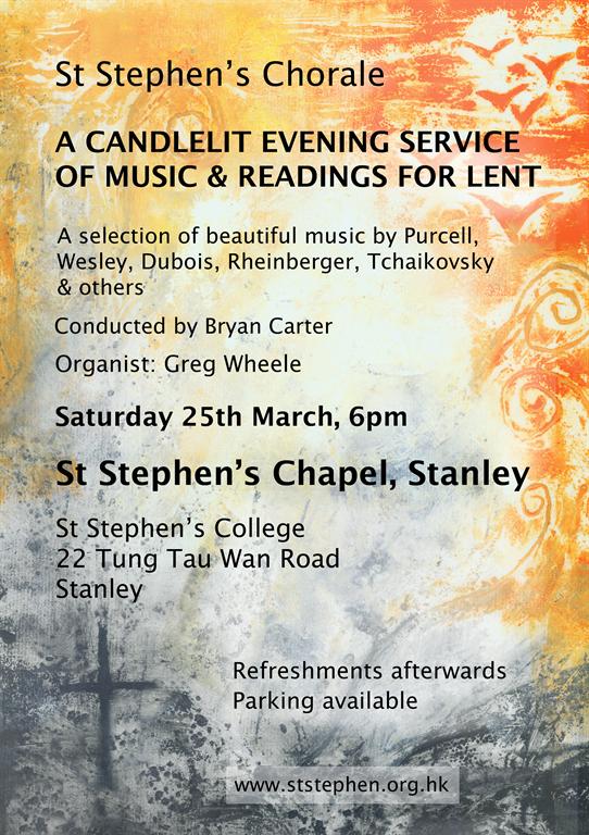 /uploads/HTMLEditor/Lentenconcert.jpgJoin us for a beautiful service of Bible Readings and Music for Lent, by Candlelight, at 6pm. The format is the same as the Christmas Lessons and Carols, but the mood is more reflective as we focus on Lenten themes. The service includes well-known congregational hymns, as well as an inspiring selection of music sung by St Stephen’s Chorale. Refreshments after the service. There is a retiring collection in aid of Fr Nadim Nassar’s Awareness Foundation, doing tremendous work with young Christians in Syria and Iraq.